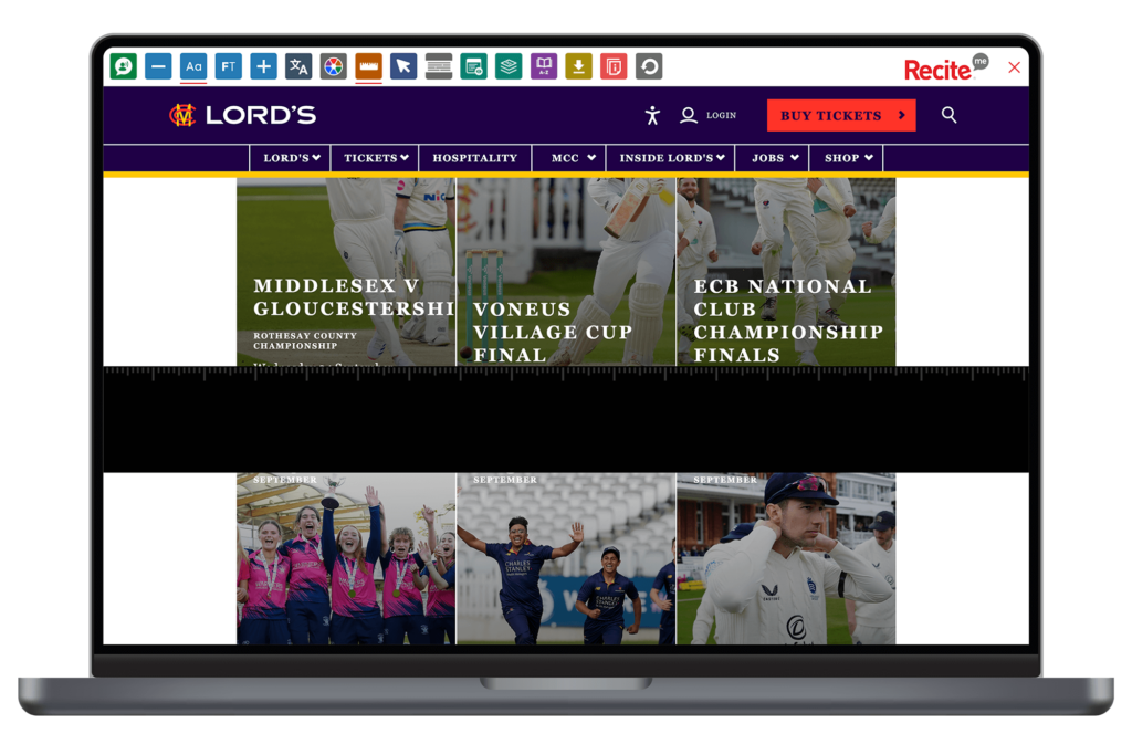 Lord’s Cricket Ground (also known as Marylebone) in London is the largest in the UK, with a capacity of 31,100 spectators. In 2020, Lord’s implemented the Recite Me assistive toolbar to address barriers faced by cricket fans online.
