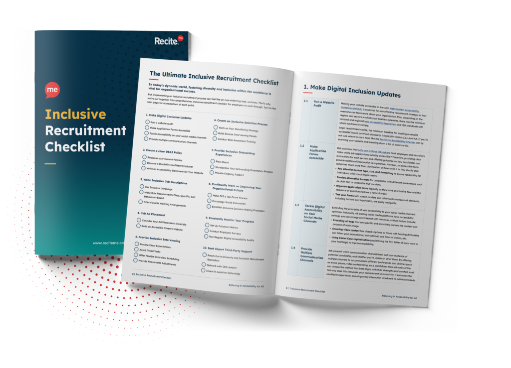 At Recite Me we know the importance of inclusion, that’s why we help so many organisations around the world become more inclusive. We provide a number of different accessibility tools that can aid organisations in a number of different ways, including recruitment practices. Some of these tools include:
